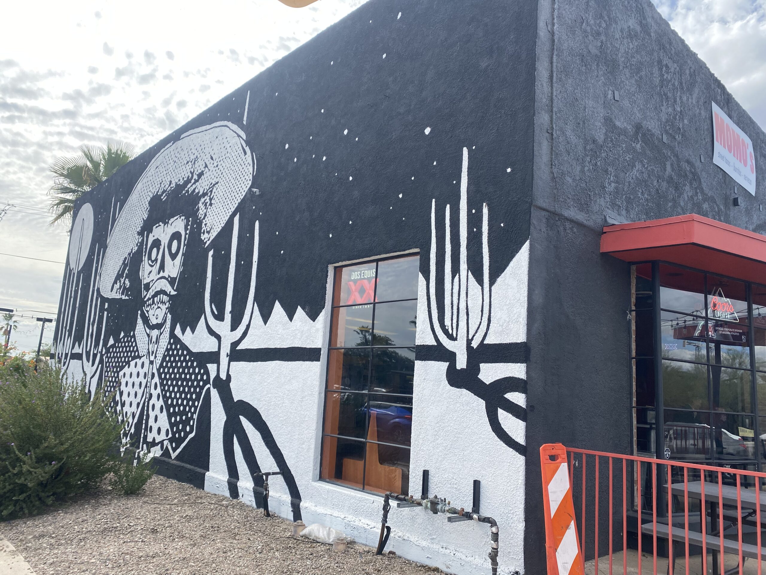 Welcome to Momo’s on 6th, a delicious, fun, welcoming Mexican restaurant that sits on the corner of the University of Arizona campus. Momo’s, a family business, has been open for four years now. A black and red building, with big windows, and a huge beautiful black and white mural on the side of the building that shows a Mexican Skeleton surrounded by the night sky with cacti, makes this restaurant feel open and welcoming.